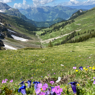 So, we took in the morning the small gondola from St. Jakob 977m to Gitschenen 1538m, and from there we did a short hike towards Sulztaler Hütte 1600m, up to Sinnsgäuer Schonegg 1917m. There we took a break of about 30min and just enjoyed the calm and this splendid Panorama. Then we walk back down towards Alpeler Wald 1540m, and did this little circular walk towards Geissboden 1604m, and back to Gitschenen 1538 m @berggasthausgitschenen ❤️ where we Drank a huge beer (well deserved 😁🍺) and had a wonderful stay (See last post). On this easy circular walk (which take about 30 to 40min from the hut/ cable car station) there were so many wild flowers 😍 (and cows 😆🐮) it was a real happiness for my eyes 😁 I couldn’t stop to say : OMG ! Amazing ! So beautiful !… 😁
