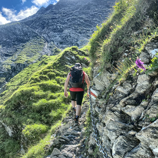 Then we continue our route to the Martinsmadhütte SAC (2002 m), we took about 2 hours to walk up, we walked through beautiful flowery fields, past rivers, walked near magnificent waterfalls, climbed a little 😅, at some places there are again chains to hold on, but the path to the hut is very well secured (you just have to stay focused, watch where you are walking, it can be slippery at some places, and maybe avoid taking selfies on these kinds of trails 😜)